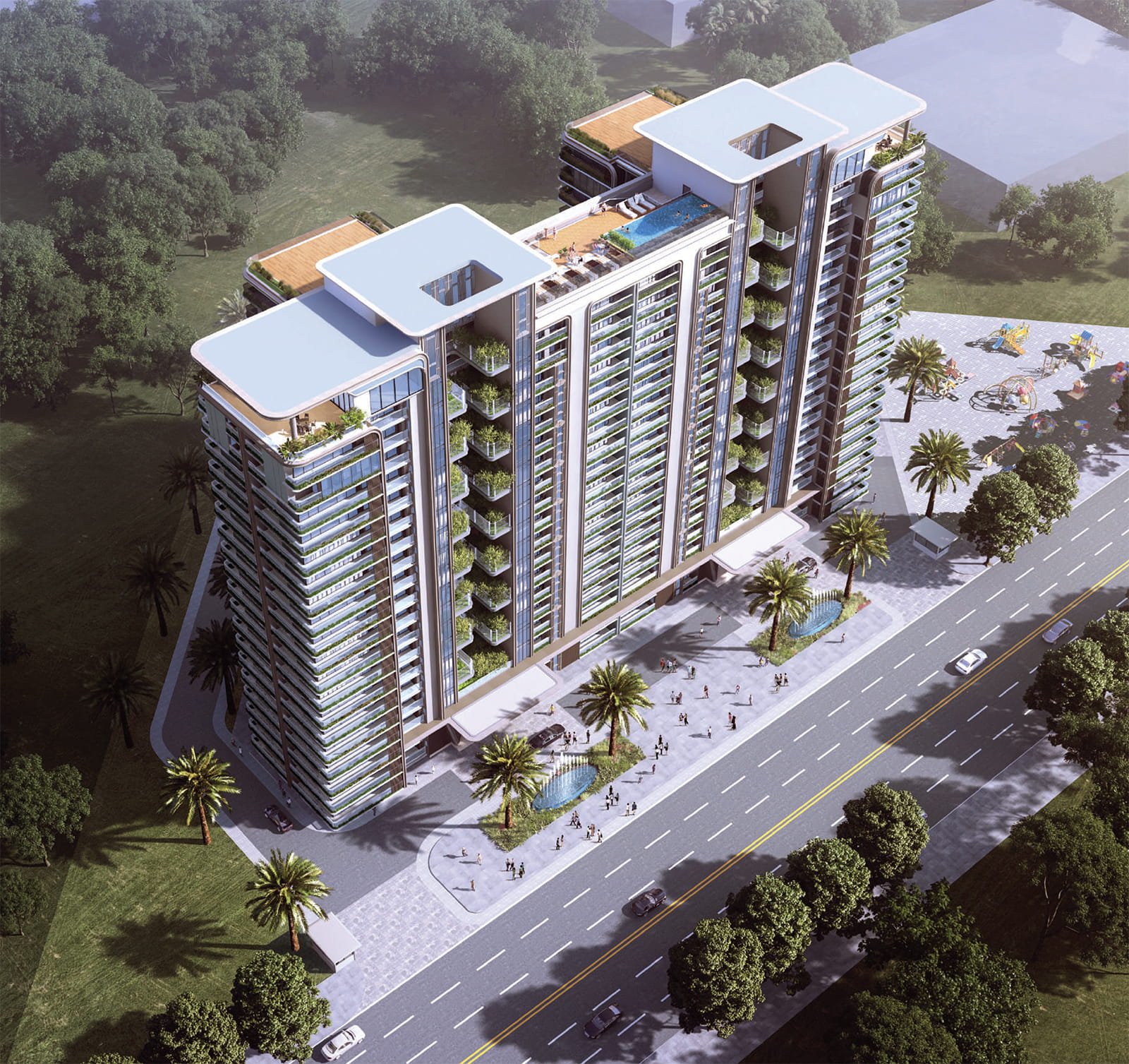 Residents can enjoy an infinity pool, Club 360, gym, spa, sky lounge, banquet hall, sports courts, and children’s play area. The project ensures a luxurious and comfortable lifestyle.